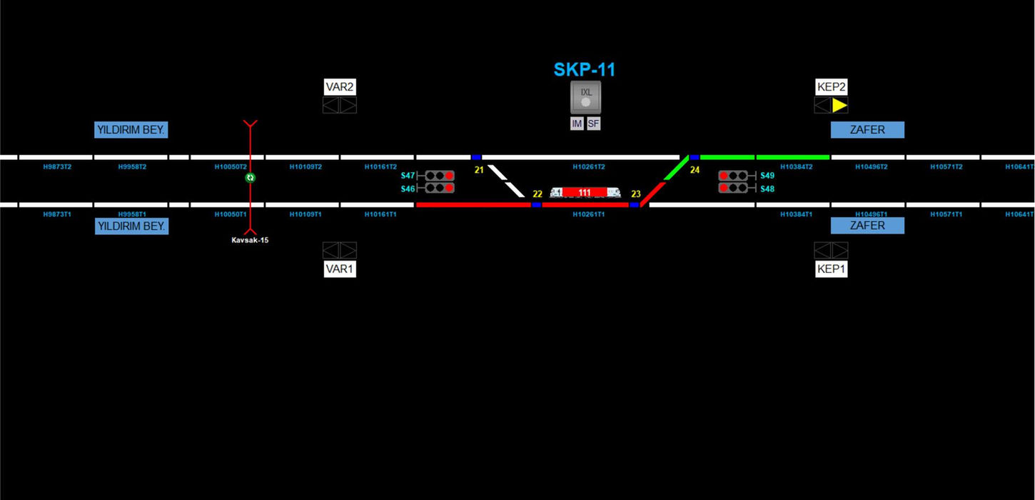Any scissors When the route (command) is sent in any point crossing or level crossing, commands are transmitted to the relevant switch motor and signal lamp via the SKP (signal control panel). When the scissor motor and signal lamps are positioned according to the route, the interlocking system locks these devices and prevents a second command from being sent. The interlocking system is SIL3 Assessment certified. We provide services in the design of the interlocking system, product supply, field application and commissioning.